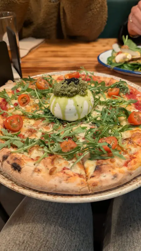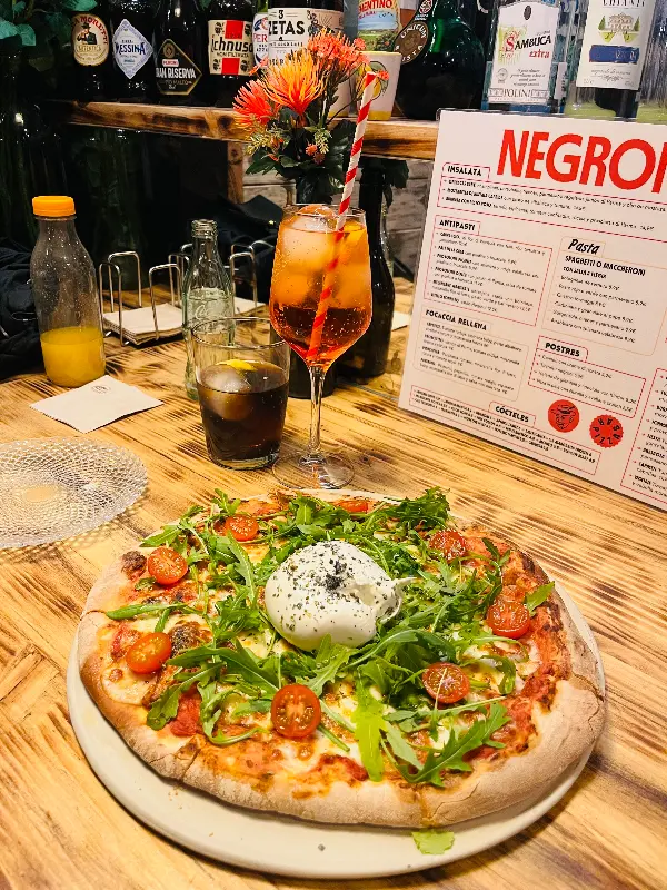 ‘피친놈’이라는 별명을 가진 한 방문객의 리뷰처럼, 이곳의 피자는 정말 특별했다. 특히 많은 이들이 추천하는 부라타 피자는 아쉽게도 품절. 하지만 걱정할 필요는 없다. 친절한 직원의 추천을 받아 트러플 피자를 주문했는데, 그 맛은 기대 이상이었다. 얇고 바삭한 도우 위에 트러플 오일의 풍미가 가득했고, 신선한 재료들이 입안에서 조화롭게 어우러졌다. 한 입 베어 무는 순간, 눈이 번쩍 뜨이는 경험이었다. 붉은 양파가 토핑된 피자의 비주얼은 보는 것만으로도 식욕을 자극했다. 네그로니와 아페롤 스프리츠를 곁들이니, 그 맛은 더욱 풍성해졌다.
