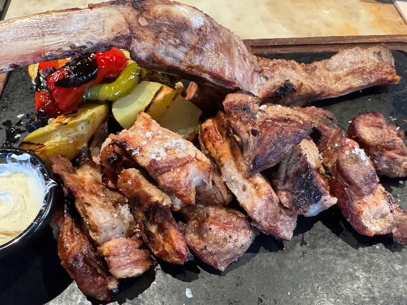 보ン고(Bongo)에서 꼭 맛봐야 할 메뉴 중 하나는 단연 토마호크 스테이크다. 큼지막한 뼈에 붙어 있는 육즙 가득한 살코기는 보기만 해도 군침이 돌았다. 겉은 바삭하고 속은 촉촉한 완벽한 굽기로 구워진 토마호크는 입안에 넣는 순간 감탄사를 자아냈다. 풍부한 육즙과 깊은 풍미는 혀끝을 황홀하게 만들었고, 함께 제공되는 구운 채소들은 스테이크의 풍미를 더욱 돋보이게 했다. 사진에서 보이는 겉면의 노릇한 갈색 빛깔은 숙련된 셰프의 솜씨를 짐작하게 했다. 4명이서 부라타 샐러드, 볶음 우동, 고로케와 함께 토마호크를 주문했는데, 기다린 보람이 있었다. 40분이라는 기다림이 전혀 아깝지 않을 만큼, 모든 메뉴가 훌륭했다.