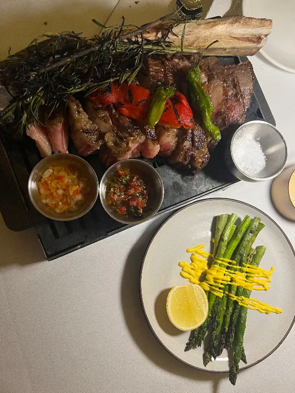 다른 날, 친구들과 함께 방문했을 때는 토마호크 스테이크를 주문했습니다. 거대한 크기에 압도되었지만, 3명이서 나눠 먹기에 충분한 양이었습니다. 카를로스 담당 서버는 능숙한 솜씨로 스테이크를 커팅해주었고, 우리는 편안하게 식사를 즐길 수 있었습니다.