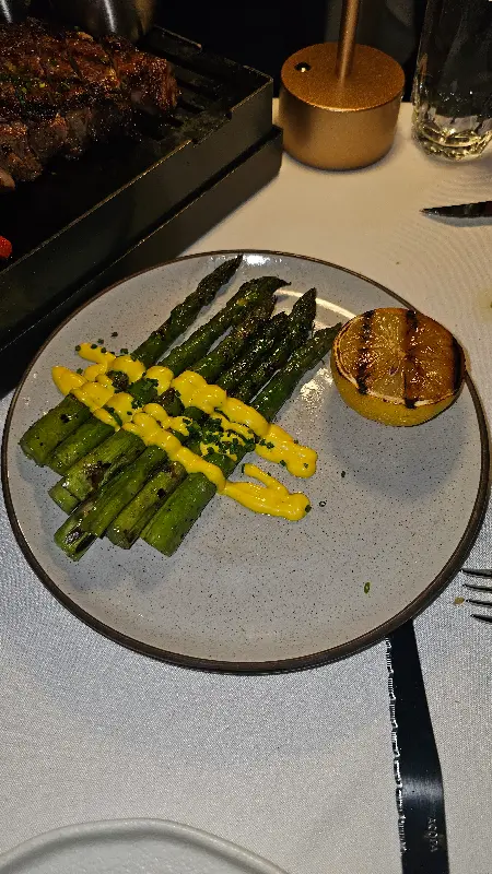 함께 제공된 구운 아스파라거스는 스테이크의 느끼함을 잡아주며, 입안을 깔끔하게 마무리해주는 역할을 했습니다. 아스파라거스의 신선함과 은은한 단맛은 스테이크와 완벽한 조화를 이루며, 훌륭한 조연 역할을 톡톡히 했습니다.
