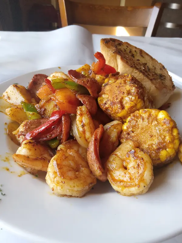메뉴를 펼쳐 들고 고민할 필요도 없이, 새우 플래터와 할라피뇨 포퍼를 주문했습니다. 스프라이트 한 잔을 곁들이니 완벽한 조화! 특히 하우스 케이준 소스에 볶아진 새우는 잊을 수 없는 맛입니다. 한 입 베어 무는 순간, 입안 가득 퍼지는 풍미는 감탄사를 자아내게 합니다. 완벽하게 부드러운 감자와 신선한 야채는 훌륭한 조연 역할을 톡톡히 해냅니다. 붉은 빛깔을 뽐내는 케이준 소스는 시각적인 즐거움까지 더하며, 풍성한 해산물 요리의 정점을 찍습니다.