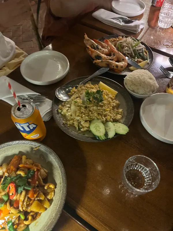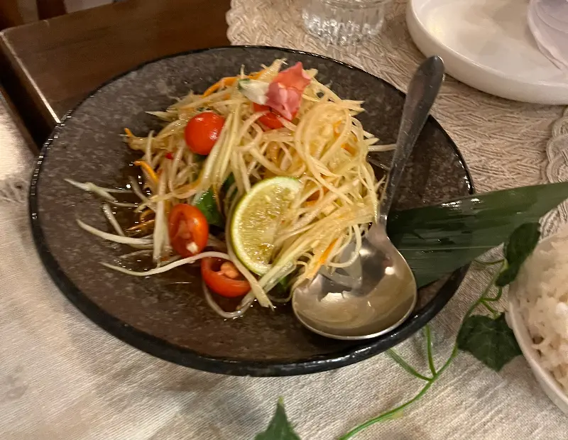 대부분의 메뉴가 푸짐한 양으로 제공되어, 만족스러운 식사를 즐길 수 있습니다. 특히, 톰얌 해산물 수프는 신선한 해산물이 듬뿍 들어가 있어, 깊고 풍부한 맛을 자랑합니다. 그린 파파야 샐러드는 아삭한 식감과 매콤한 맛이 어우러져, 입맛을 돋우는 데 제격입니다. 랍스터 팟타이는 큼지막한 랍스터 한 마리가 통째로 들어가 있어, 고급스러운 풍미를 더합니다.