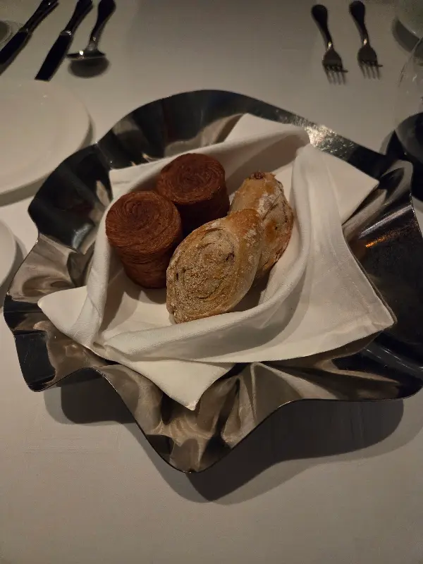 따뜻하게 구워져 나온 빵은 겉은 바삭하고 속은 촉촉하며, 곁들여 먹는 버터와의 조화가 훌륭합니다. 리필 서비스 또한 만족스럽습니다.