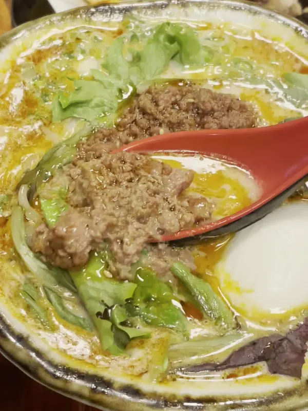 탄탄멘의 매콤한 국물, 숟가락을 멈출 수 없는 중독적인 맛입니다.