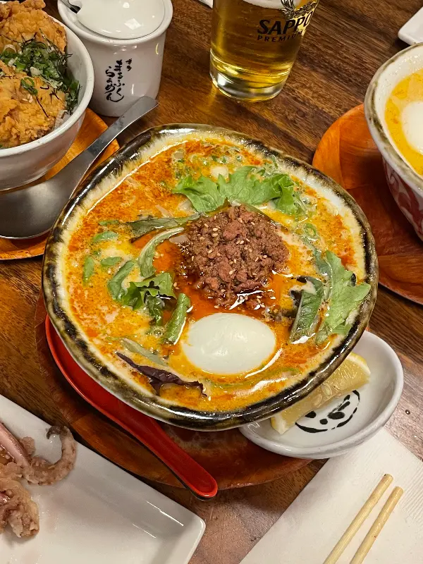 함께 간 일행은 탄탄멘을 주문했습니다. 적당히 매콤하면서도 따뜻한 국물은 속을 든든하게 채워줍니다. 붉은 빛깔의 국물은 보기만 해도 식욕을 자극하고, 매콤한 향이 코를 간지럽힙니다.