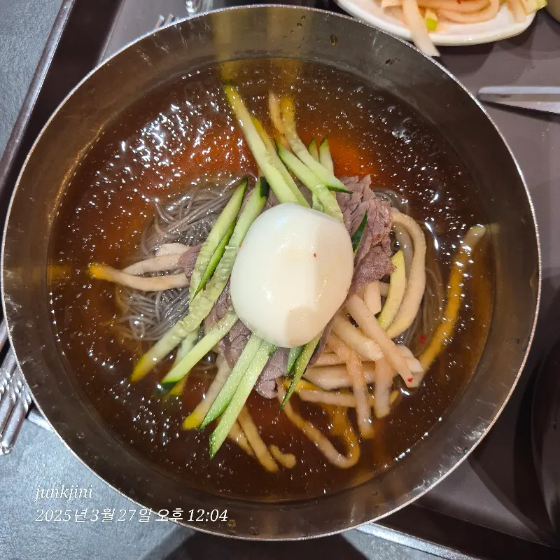 시원한 국물이 일품인 냉면. 더운 날씨에 지친 입맛을 되살려줍니다.