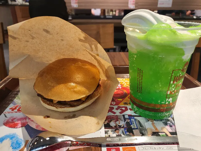 오랜만에 방문한 Wendy’s First Kitchen은 무인 주문 시스템으로 바뀌어 있었습니다. 기계 앞에서 메뉴를 찬찬히 살펴보니, 옛날부터 즐겨 먹던 멜로크리와 시라타마 경단이 여전히 메뉴에 있었습니다. 망설임 없이 두 메뉴를 주문했죠. 주문이 밀려 잠시 기다리는 동안, 가게 안을 둘러봤습니다.