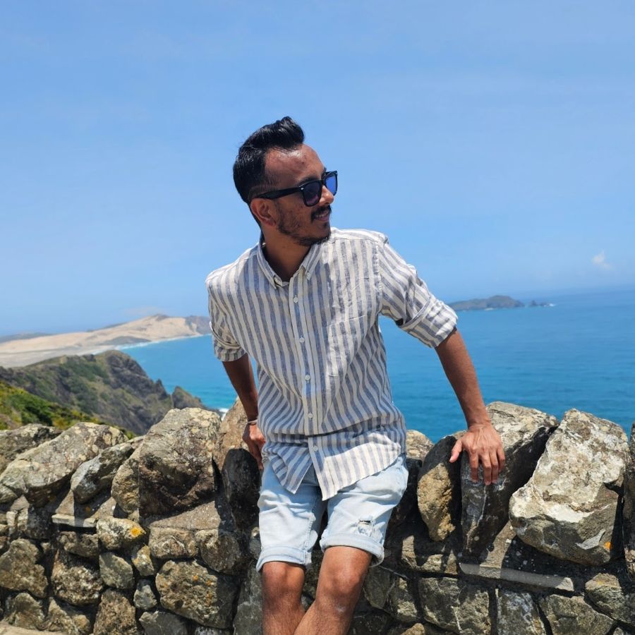 푸른 바다와 하늘을 배경으로 시원한 풍경을 바라보고 있는 한 남자의 모습입니다. 이국적인 풍경은 SAFFRON이 위치한 피지의 아름다움을 상징하며, 여행 중 휴식을 즐기는 이들의 모습을 떠올리게 합니다.