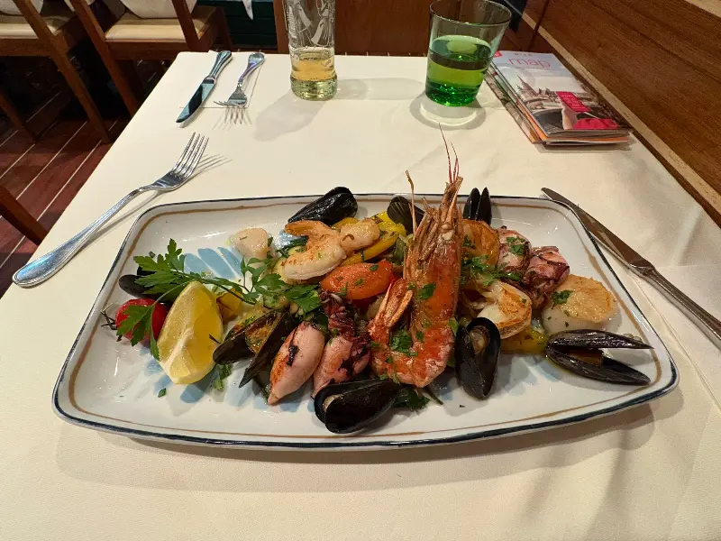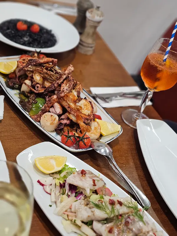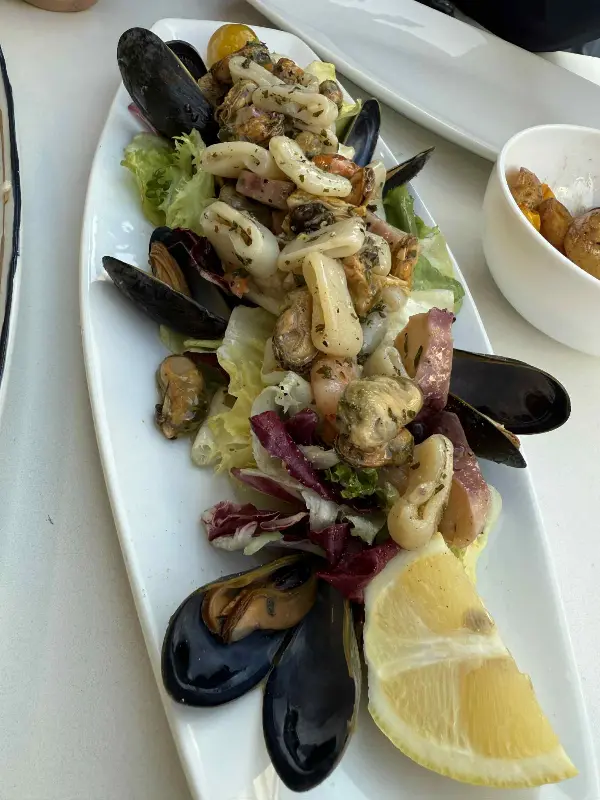 메뉴판을 펼치자, 신선한 해산물의 향기가 코를 간지럽힙니다. 다양한 해산물 요리 앞에서 고민에 빠졌지만, 친절한 직원의 추천을 받아 새우 조개 플래터와 해산물 샐러드, 그리고 브란치노를 주문했습니다. 주문 후 얼마 지나지 않아, 눈 앞에 펼쳐진 음식들의 향연은 감탄을 자아내게 합니다.