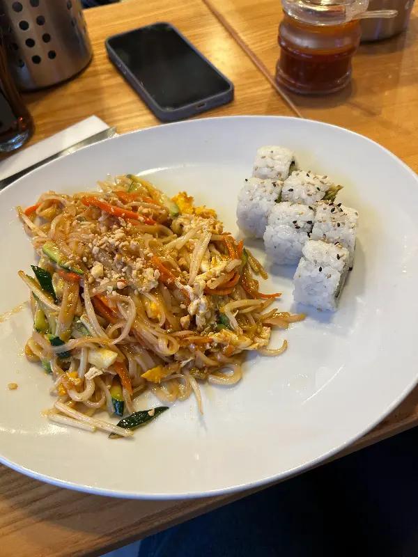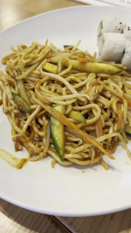 보기만 해도 군침이 도는 스시와 볶음면의 조화.
