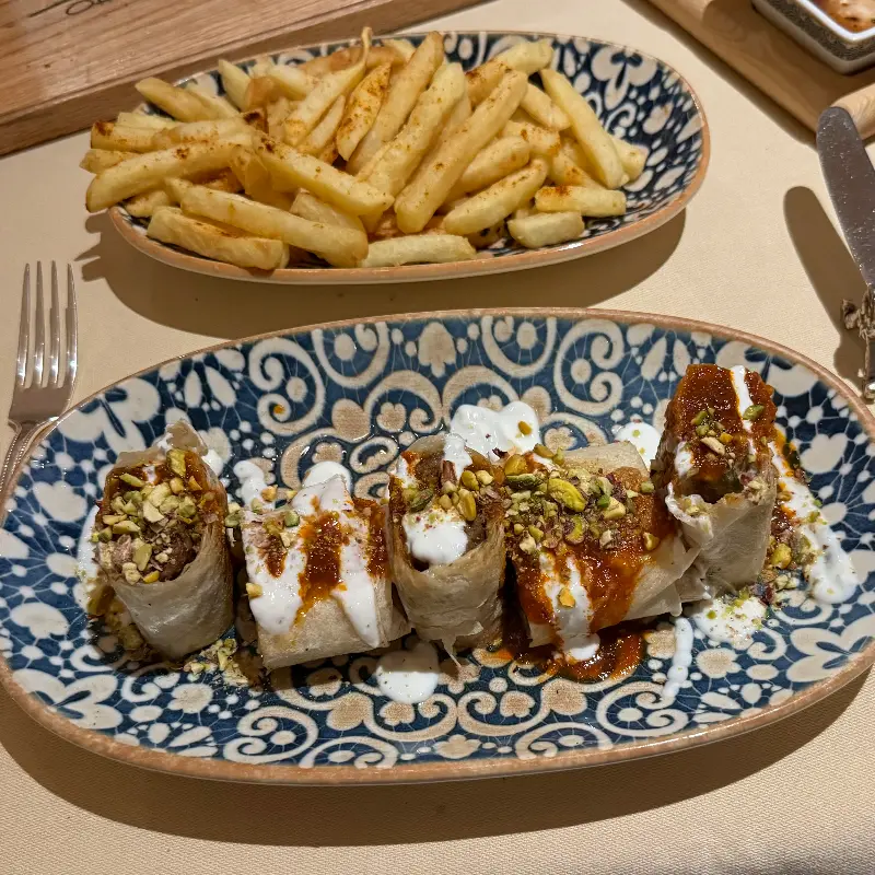 테이블 옆에 놓인 꼬치에 꽂아져 나오는 케밥은 비주얼부터 압도적이었다. 윤기가 흐르는 고기와 신선한 야채들이 층층이 쌓여 있었고, 꼬치에서 빼내어 한 입 베어 무니, 입안 가득 퍼지는 육즙과 향신료의 풍미가 일품이었다. 특히 함께 제공된 소스와 곁들여 먹으니, 그 맛이 더욱 깊어졌다. 짭짤하면서도 달콤한 맛이 느껴지는 베이티 케밥은 바클라바를 연상시키는 독특한 풍미를 자랑했다. 얇게 펴진 도우 안에 다진 고기와 향신료를 넣고 돌돌 말아 구워낸 베이티 케밥은 겉은 바삭하고 속은 촉촉했다.