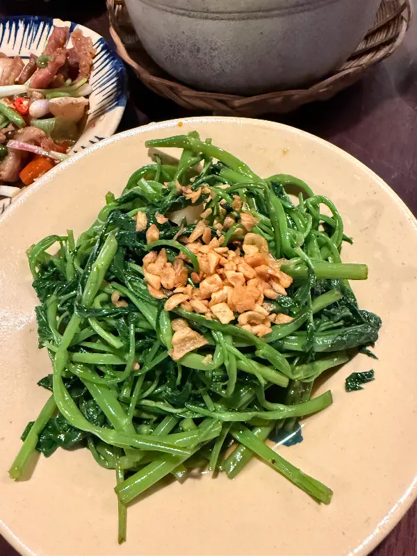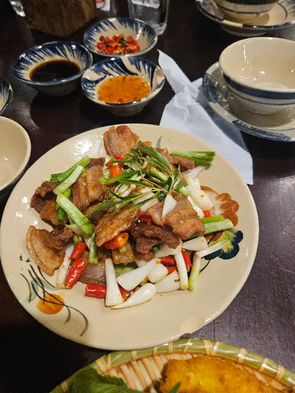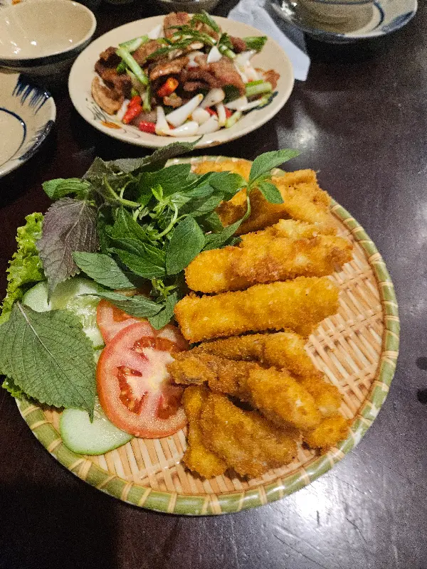 문을 열자마자 눈에 들어온 것은 화려하진 않지만, 베트남 특유의 소박함과 정겨움이 느껴지는 인테리어였다. 테이블마다 놓인 알록달록한 식기와 냅킨, 벽면에 걸린 베트남 전통 모자와 그림들이 이곳이 맛집임을 짐작하게 했다. 2층으로 올라가는 계단 옆에는 베트남 전통 도자기들이 가득 진열되어 있어 마치 작은 박물관에 온 듯한 느낌을 주었다. 은은한 조명 아래 현지인들의 활기찬 대화 소리가 섞여, 여행지의 설렘을 더욱 고조시켰다.