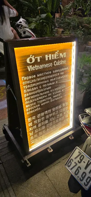 나트랑 담시장을 활보하며 기념품과 흥정을 마친 후, 허기진 배를 움켜쥐고 맛집을 찾아 나섰다. 수많은 식당들 사이에서 우리의 눈길을 사로잡은 곳은 바로 현지인들의 발길이 끊이지 않는다는 나트랑 로컬 맛집이었다. 간판에서부터 풍겨져 나오는 정겨움에 이끌려 망설임 없이 문을 열었다.