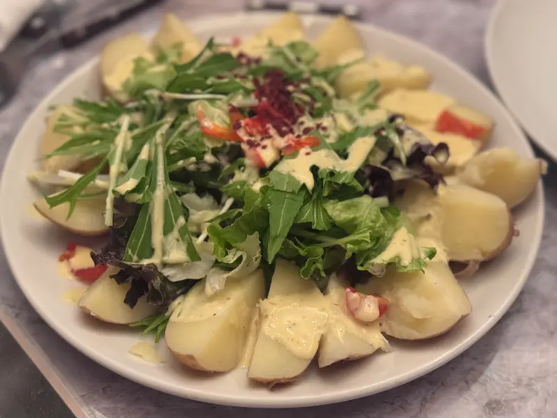 신선한 야채와 드레싱이 조화로운 샐러드, 입맛을 돋우는 상큼함이 가득하다.