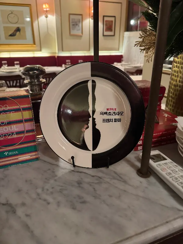 레스토랑 내부는 프랑스 식당의 분위기를 그대로 재현해 놓은 듯했습니다. 앤티크한 가구와 소품, 은은한 조명, 그리고 잔잔하게 흐르는 클래식 음악은 마치 프랑스 여행을 온 듯한 착각을 불러일으켰습니다. 테이블 위에는 섬세하게 세팅된 식기와 커트러리가 놓여 있었고, 냅킨에는 욘트빌의 로고가 새겨져 있었습니다. 이런 작은 디테일 하나하나가 욘트빌의 품격을 보여주는 듯했습니다.