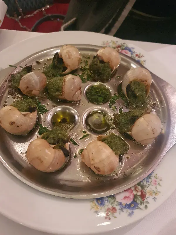 따뜻한 전채 요리로는 달팽이 요리와 어니언 스프를 선택했습니다. 달팽이 요리는 허브향이 강하게 느껴졌지만, 올리브 오일과의 조화가 훌륭했습니다. 어니언 스프는 깊고 진한 맛이 일품이었는데, 따뜻한 스프를 한 입 머금으니 몸과 마음이 따뜻해지는 기분이었습니다.