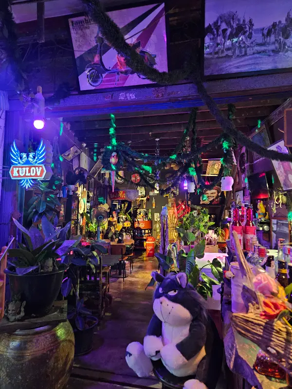KULOY는 그 어떤 바에서도 느껴보지 못한 독특한 분위기를 자랑합니다. 벽면을 가득 채운 빈티지 소품들과 푸르른 식물들이 조화롭게 어우러져 마치 영화 세트장에 들어온 듯한 착각을 불러일으킵니다. 낡은 나무 테이블과 의자, 곳곳에 놓인 작은 조명들이 아늑함을 더하고, 편안하게 대화를 나누며 시간을 보내기에 안성맞춤입니다.