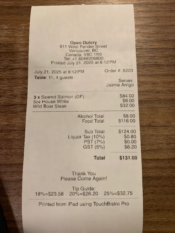 오랜만에 엄마와 함께 떠난 밴쿠버 여행. 낯선 도시의 설렘과 함께 맛있는 음식을 찾아 나서는 것은 여행의 큰 즐거움 중 하나다. 우연히 발견한 오픈 아웃크라이(Open Outcry)는 우리의 기대를 훨씬 뛰어넘는 특별한 경험을 선사했다. 호텔에서 가까운 곳에 위치해 있어 부담 없이 방문했는데, 문을 열고 들어서는 순간 아늑하고 편안한 분위기에 매료되었다.