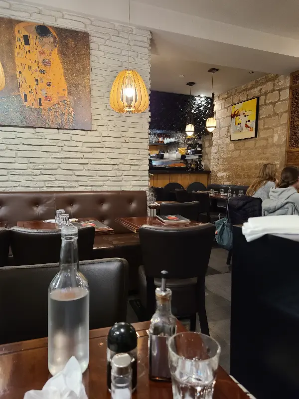 가게 내부는 아담했지만, 구석구석 정성이 느껴지는 인테리어가 인상적이었다. 은은한 조명 아래 벽돌 벽에는 그림이 걸려 있었고, 테이블 위에는 작은 꽃병이 놓여 있었다. 왁자지껄한 분위기 속에서도 편안하게 식사를 즐길 수 있는 공간이었다.