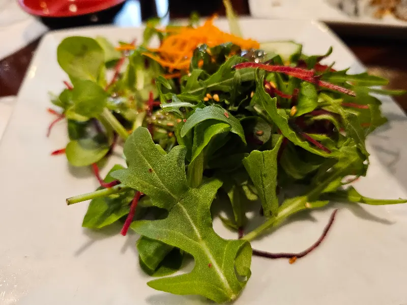 초밥 세트에 포함된 된장국과 샐러드를 깜빡하고 안 주셔서 요청드렸는데, 죄송하다며 푸짐하게 내어주셨다. 따뜻한 된장국은 짭짤하면서도 구수한 맛이 일품이었고, 신선한 샐러드는 아삭한 식감과 상큼한 드레싱이 조화로웠다. 특히 샐러드에는 신선한 아보카도도 들어가 있어 부드러운 식감과 고소한 풍미를 더했다.