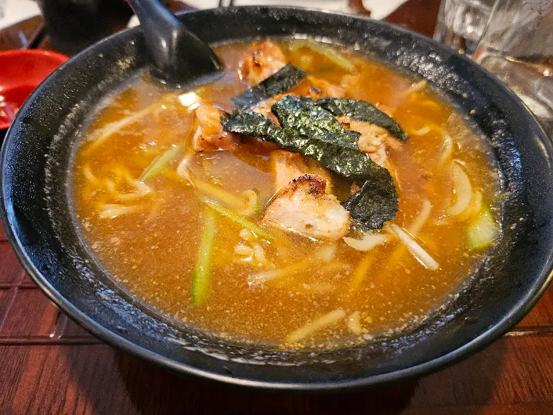 초밥과 함께 나온 라면 역시 기대 이상이었다. 꼬들꼬들한 면발과 얼큰한 국물이 환상적인 조화를 이루었다. 특히 숙주나물과 파가 듬뿍 들어가 있어 아삭한 식감과 향긋한 풍미를 더했다. 초밥을 먹다가 살짝 느끼해질 때쯤 라면 국물을 한 입 마시니, 입안이 깔끔하게 정리되는 느낌이었다.