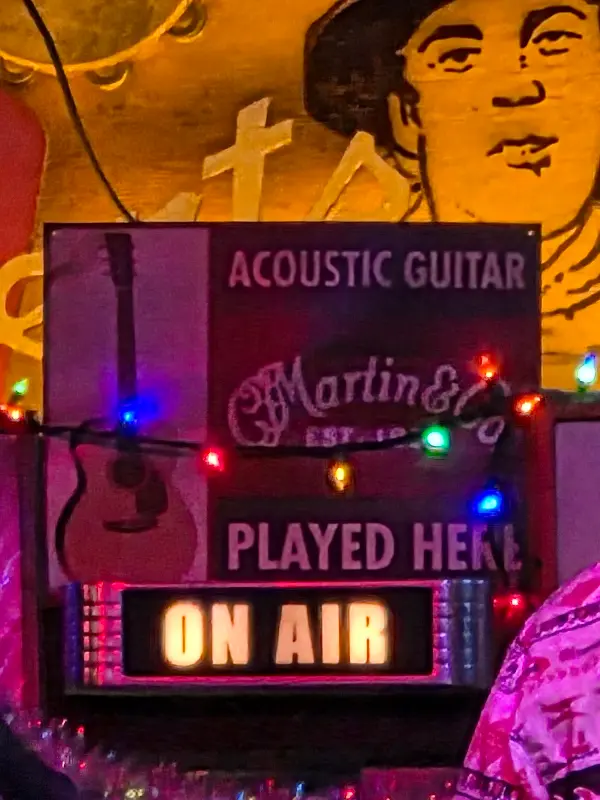 로버츠 웨스턴 월드의 문을 열고 들어선 순간, 마치 시간 여행을 떠나온 듯한 기분이 들었다. 낡은 나무 바닥과 벽면을 가득 채운 컨트리 음악 관련 기념품들은 이곳의 오랜 역사를 고스란히 보여주는 듯했다. 은은한 조명 아래, 사람들은 맥주를 마시며 음악에 몸을 맡기고 있었다. 활기 넘치는 분위기 속에서도 어딘가 모르게 편안함이 느껴지는 공간이었다. 벽에는 “ACOUSTIC GUITAR PLAYED HERE ON AIR”라고 쓰인 네온사인이 빛나고 있었다. 켜진 ‘ON AIR’ 표시는 로버츠 웨스턴 월드가 단순한 술집이 아닌, 컨트리 음악의 살아있는 역사를 만들어가는 공간임을 상징하는 듯했다.