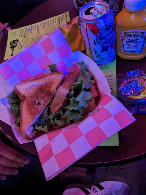 따뜻하게 구워진 빵 사이에 두툼한 볼로냐 소시지가 들어간 샌드위치는, 보기에는 평범해 보였지만 한 입 베어 무는 순간 입안 가득 퍼지는 고소함과 짭짤함이 일품이었다. 튀긴 소시지의 바삭한 식감과 부드러운 빵의 조화는 환상적이었다. 시원한 PBR 맥주 한 모금을 곁들이니, 그 맛은 더욱 배가되었다. “튀긴 볼로냐 샌드위치와 PBR 스페셜은 꼭 드셔보셔야 하고, 가격도 정말 저렴합니다!”라는 리뷰처럼, 로버츠 웨스턴 월드의 ‘경기 침체 스페셜’은 가성비 최고의 메뉴였다.