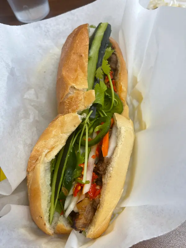 쌀국수와 함께 반미 포크도 주문했다. 바삭한 바게트 빵 속에 돼지고기, 채소, 소스가 조화롭게 어우러진 베트남식 샌드위치였다. 한 입 베어 무는 순간, 신선한 재료들의 향긋함이 입안 가득 퍼졌다. 특히 돼지고기는 잡내 없이 깔끔했고, 빵은 겉은 바삭하고 속은 촉촉했다.