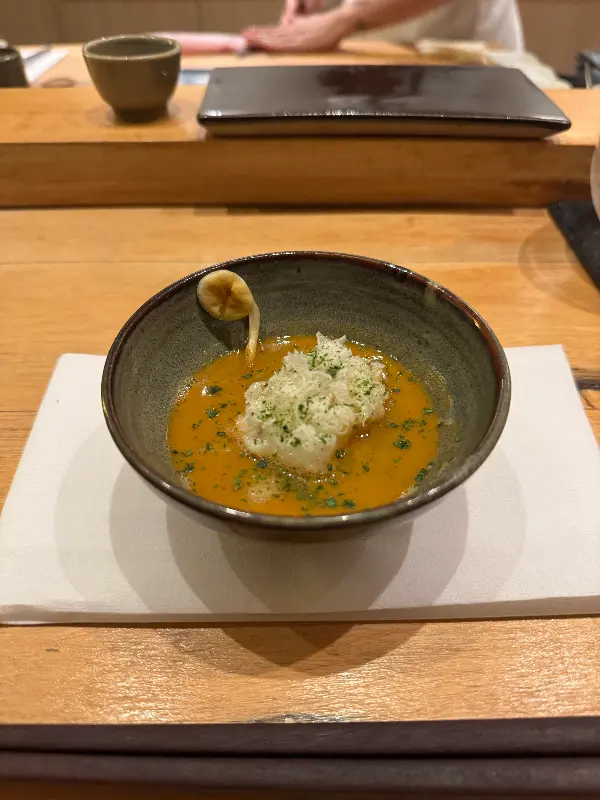 코스 중간중간에 나오는 따뜻한 국물 요리 또한 입안을 깔끔하게 정돈해주는 역할을 했다. 특히 시원한 조개 육수에 유자 향이 은은하게 퍼지는 국물은, 다음 스시를 더욱 맛있게 즐길 수 있도록 도와주었다.