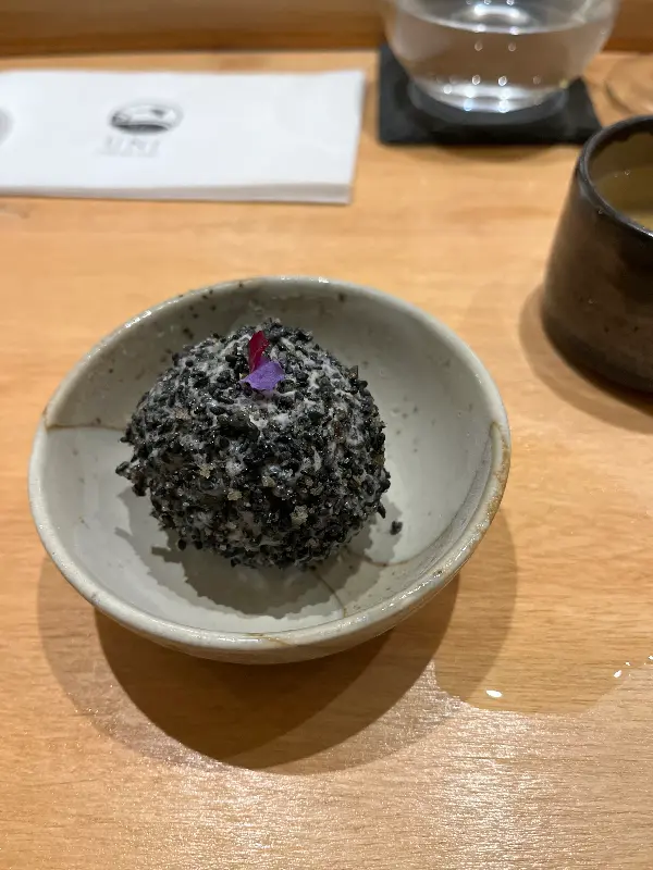 식사를 마치고 나서는 따뜻한 녹차와 함께 앙증맞은 디저트가 나왔다. 달콤한 팥 앙금이 들어간 모찌는 입안을 부드럽게 감싸며, 완벽한 마무리감을 선사했다. 마지막까지 셰프님의 정성이 느껴지는 순간이었다.