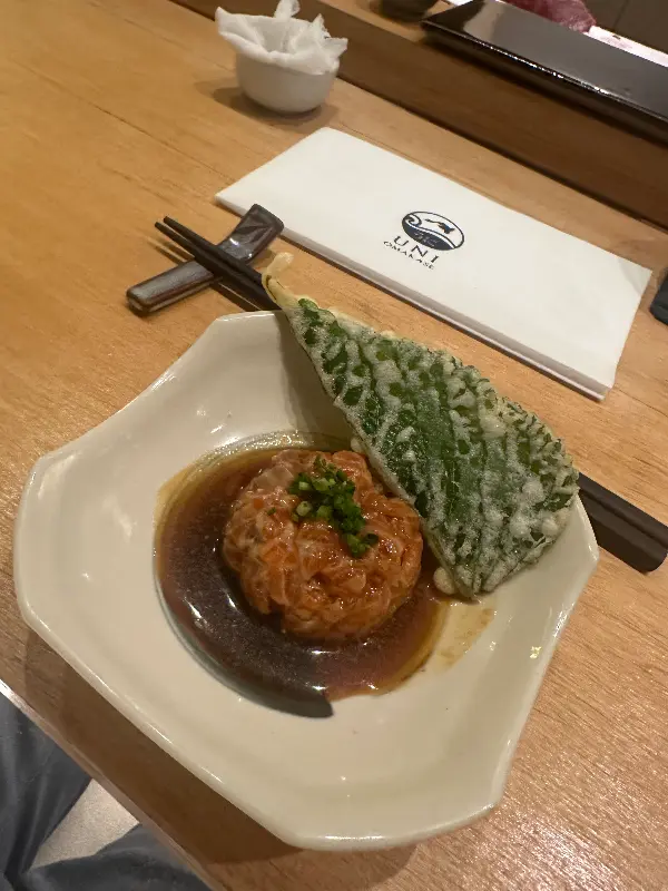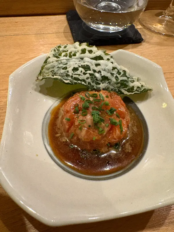 특히 인상 깊었던 것은 연어 스시였다. 입안에 넣는 순간, 사르르 녹아내리는 듯한 부드러운 식감과 신선한 바다 향이 입안 가득 퍼져 나갔다. 톡톡 터지는 날치알의 식감 또한 재미를 더했다. 셰프님의 설명대로, 간장을 살짝 찍어 먹으니 연어 본연의 풍미를 더욱 깊게 느낄 수 있었다.