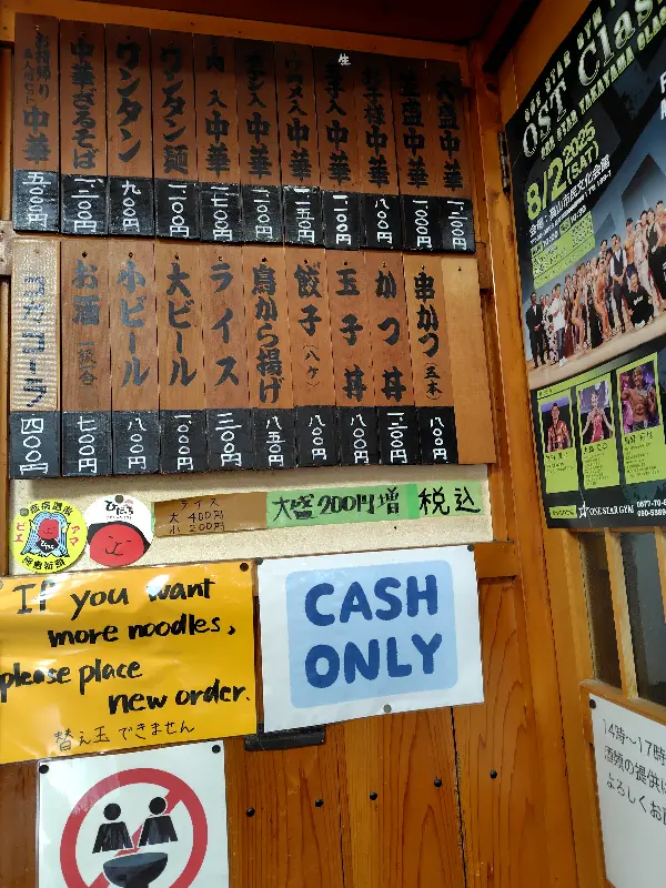 가게 문을 열자, 따뜻한 온기와 함께 라멘 냄새가 코를 간지럽혔다. 작은 가게 안은 이미 손님들로 북적였다. 카운터석 몇 자리와 테이블 하나가 놓인 다다미 방은, 마치 일본 가정집에 초대받은 듯 아늑하고 정겨운 분위기를 자아냈다. 관광객보다는 현지인들이 많이 찾는 듯했다.