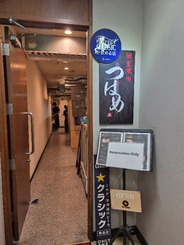 삿포로의 겨울은 낭만 그 자체였다. 하얀 눈이 소복이 쌓인 거리를 걷는 것만으로도 마음이 설렜다. 하지만 여행의 설렘을 더욱 깊게 만들어준 것은 바로 한 야키니쿠 맛집과의 만남이었다. 핫페퍼를 통해 미리 예약해둔 덕분에 기다림 없이 따뜻한 룸으로 안내받을 수 있었다. 문을 열자 은은하게 퍼지는 숯불 향과 아늑한 분위기가 기대감을 고조시켰다.