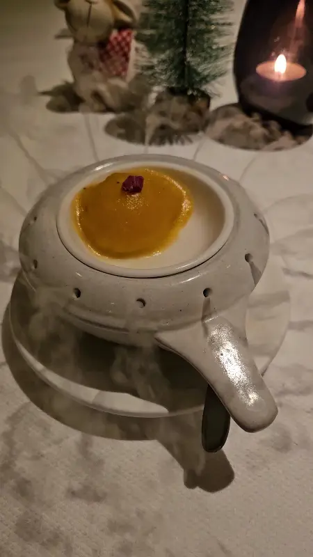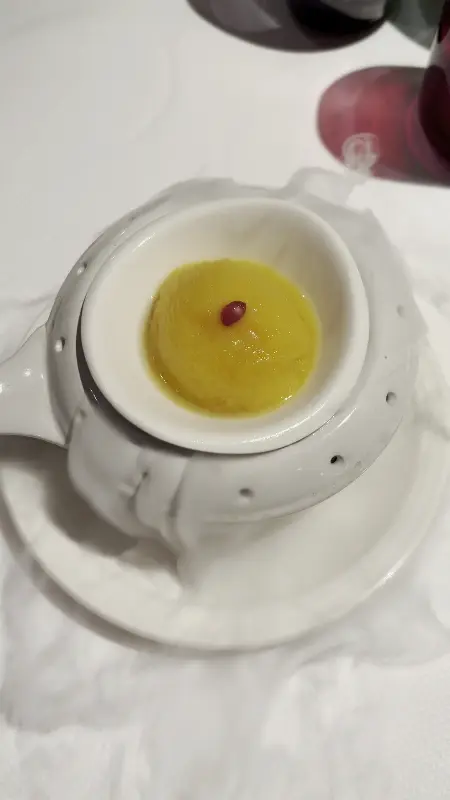 창가 테이블에 앉아 정원을 바라보니, 그 순간부터 특별한 경험이 시작될 것이라는 예감이 들었습니다. 레스토랑의 아름다운 직원들은 친절하게 우리를 맞이했고, 필요한 모든 서비스를 아낌없이 제공해 주었습니다. 우리 가족 중에는 채식주의자 5명과 비채식주의자 1명이 있었는데, 직원들은 모든 구성원의 입맛을 만족시킬 수 있도록 메뉴 선택에 세심한 도움을 주었습니다.