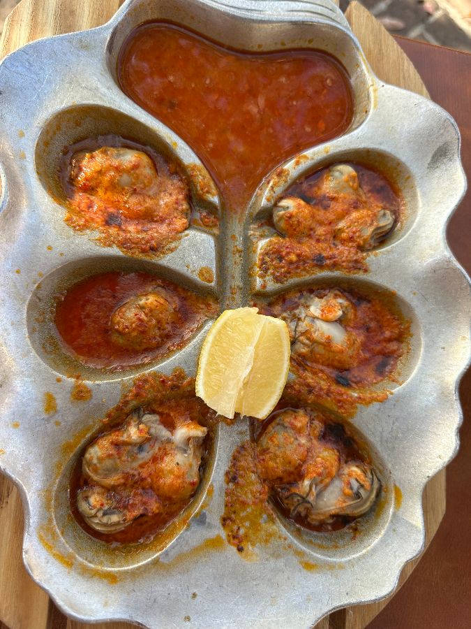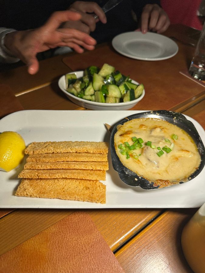 화덕에 구운 굴은 특히 인상적이었습니다. 뜨거운 오븐에서 갓 나온 굴은 짙은 소스와 완벽하게 어우러져 풍부한 바다 향과 고소함이 입안 가득 퍼졌습니다. 살짝 뿌려진 초록빛 고명은 시각적인 아름다움뿐만 아니라 굴의 풍미를 한층 더 끌어올려 주었습니다. 또한, 게살 애피타이저는 그야말로 별미였습니다. 신선한 게살이 듬뿍 들어간 이 요리는 함께 나온 바삭한 크래커에 올려 먹으니 그 맛이 더욱 훌륭했습니다. 촉촉한 게살과 바삭한 크래커의 조화는 잊을 수 없는 미식 경험을 선사했습니다.