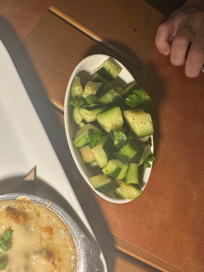 새로운 맛에 도전하고 싶다면 악어 튀김을 추천합니다. 마치 팝콘 치킨처럼 튀겨져 나오는데, 겉은 바삭하고 속은 쫄깃한 식감은 색다른 재미와 맛을 동시에 선사했습니다. 호기심을 자극하는 비주얼만큼이나 맛도 훌륭해서 일행 모두 만족하며 즐겼습니다. 곁들여 나온 오이 샐러드는 악어 튀김의 기름진 맛을 잡아주며 상큼한 조화를 이루었습니다.