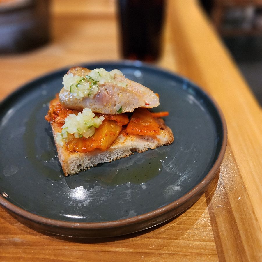 Cochon은 평범함을 거부하는 독창적인 남부 요리로 명성이 자자합니다. 이곳의 메뉴는 마치 남부 지역의 다채로운 문화만큼이나 풍성하고 개성 넘쳤습니다. 첫 방문이라면 오늘의 신메뉴를 포함해 여러 요리를 맛보는 것을 추천합니다. 테이블에 앉아 메뉴판을 넘기자, 평소 접하기 어려운 독특한 이름들이 눈에 띄었습니다. 점원분은 모든 메뉴에 대해 해박한 지식을 가지고 있었고, 친절하고 상세한 설명 덕분에 메뉴 선택에 큰 도움이 되었습니다. 주문을 마치고 음식을 기다리는 동안, 갓 구운 빵과 버터가 먼저 제공되었습니다.