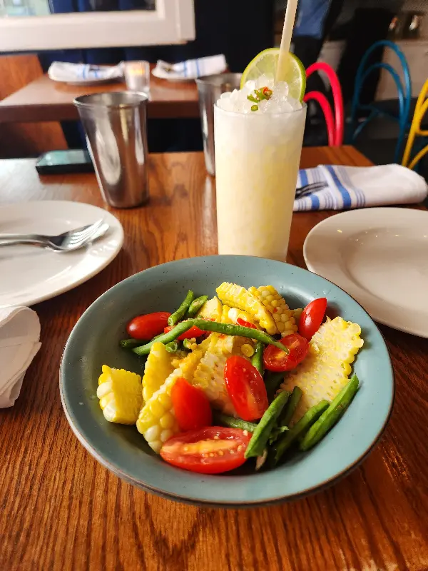 함께 주문한 ‘쏨땀 콘 샐러드’는, 톡톡 터지는 옥수수 알갱이와 신선한 채소의 조화가 인상적이었다. 매콤하면서도 새콤한 드레싱은 입맛을 돋우기에 충분했다. 다만 매운맛에 약한 사람에게는 다소 맵게 느껴질 수 있을 것 같았다.