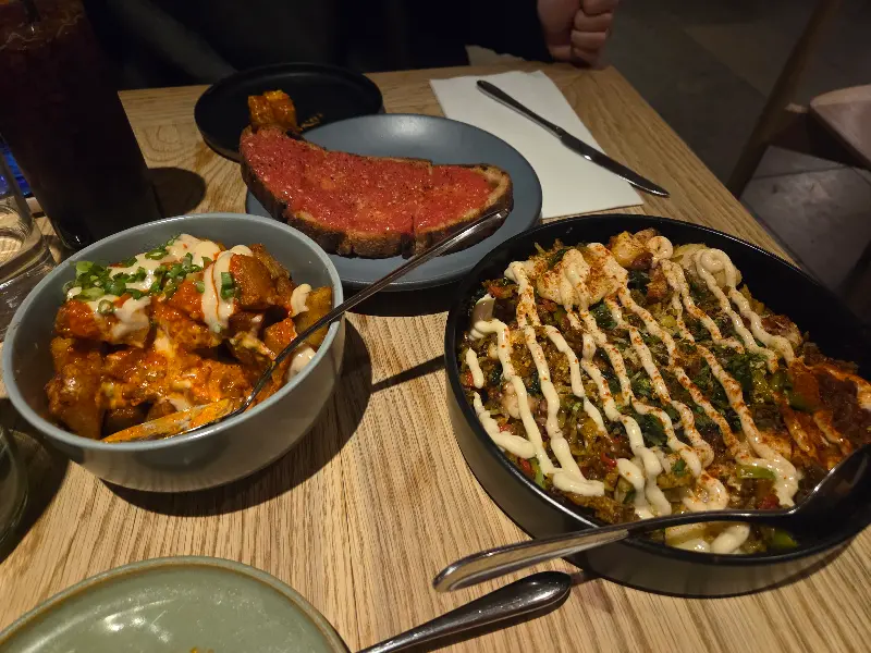 파타타스 브라바스, 구운 비트, 삼겹살 등 다양한 메뉴를 맛보며, 푸짐한 양에 만족했다. 직원들은 친절했지만, 과도하게 부담스럽지 않아 편안하게 식사를 즐길 수 있었다.