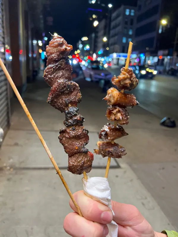 푸드 트럭을 떠나오는 발걸음은 아쉬움으로 가득했다. 다음에는 다른 종류의 꼬치도 꼭 맛봐야겠다는 다짐과 함께, 차이나타운의 밤거리를 걸었다. 잊을 수 없는 뉴욕의 맛, 숯불 꼬치는 앞으로도 나의 뉴욕 여행에서 빼놓을 수 없는 코스가 될 것이다.