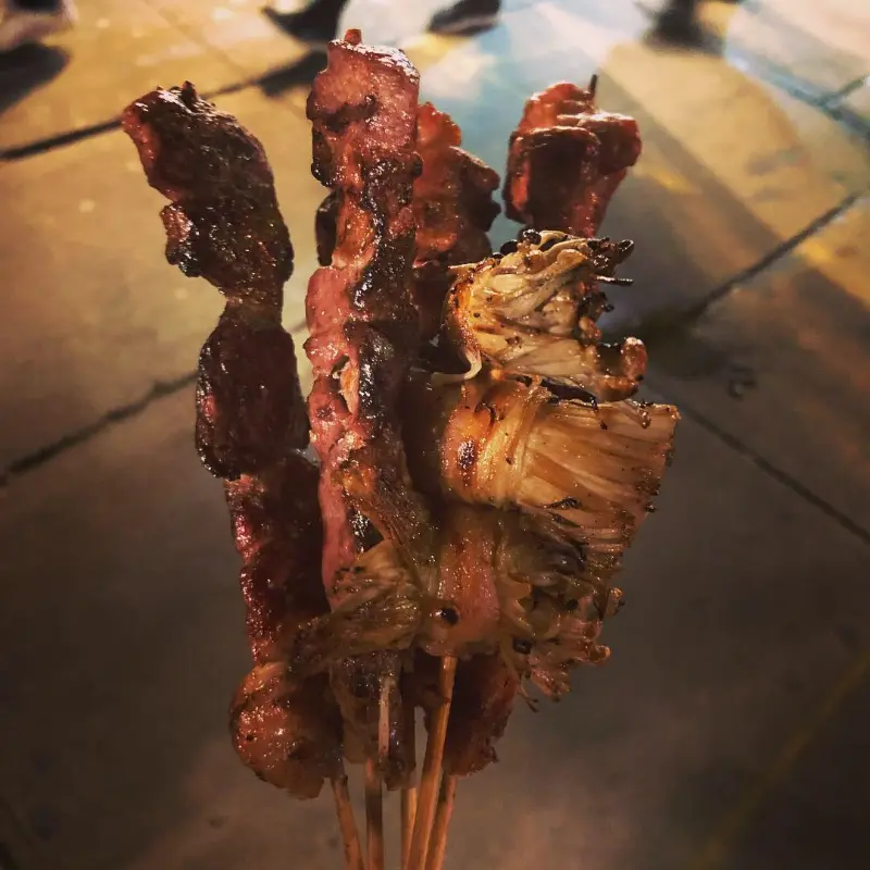 주문한 꼬치가 나오자, 그 비주얼에 감탄했다. 숯불 향을 가득 머금은 꼬치는 윤기가 자르르 흘렀고, 겉은 바삭하게 익어 있었지만 속은 촉촉함을 유지하고 있었다. 꼬치 위에는 붉은 빛깔의 향신료가 듬뿍 뿌려져 있어, 매콤한 향이 코를 자극했다.