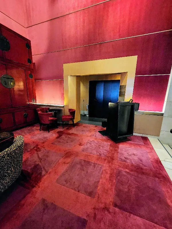입구에 들어서자마자 눈에 띄는 것은 화려한 꽃 장식입니다. 붉은색 꽃들이 풍성하게 피어있는 모습은 마치 예술 작품을 연상시키며, 공간에 생기를 불어넣습니다. 붉은색은 Ty Bar의 시그니처 컬러라고 해도 과언이 아닐 정도로, 인테리어 곳곳에서 찾아볼 수 있습니다. 벽, 가구, 조명 등 모든 요소들이 붉은색을 중심으로 조화롭게 어우러져, 고급스러우면서도 따뜻한 분위기를 연출합니다.