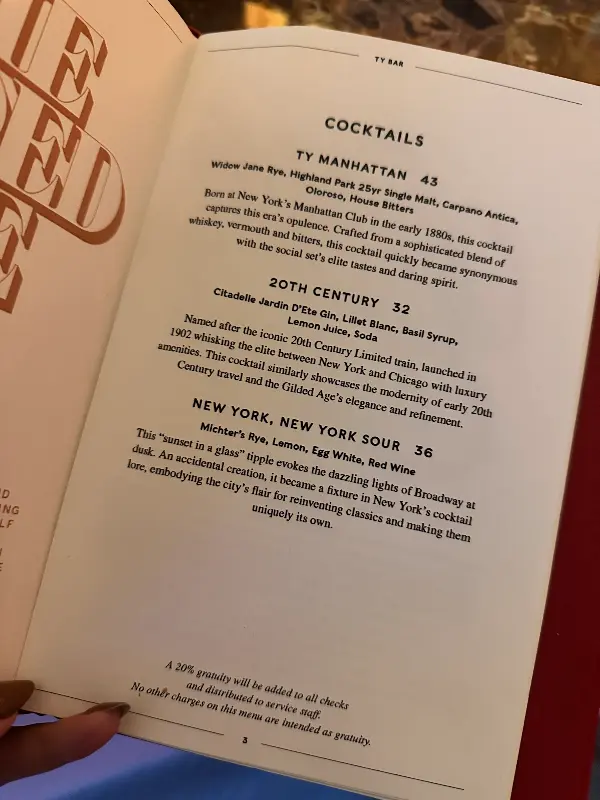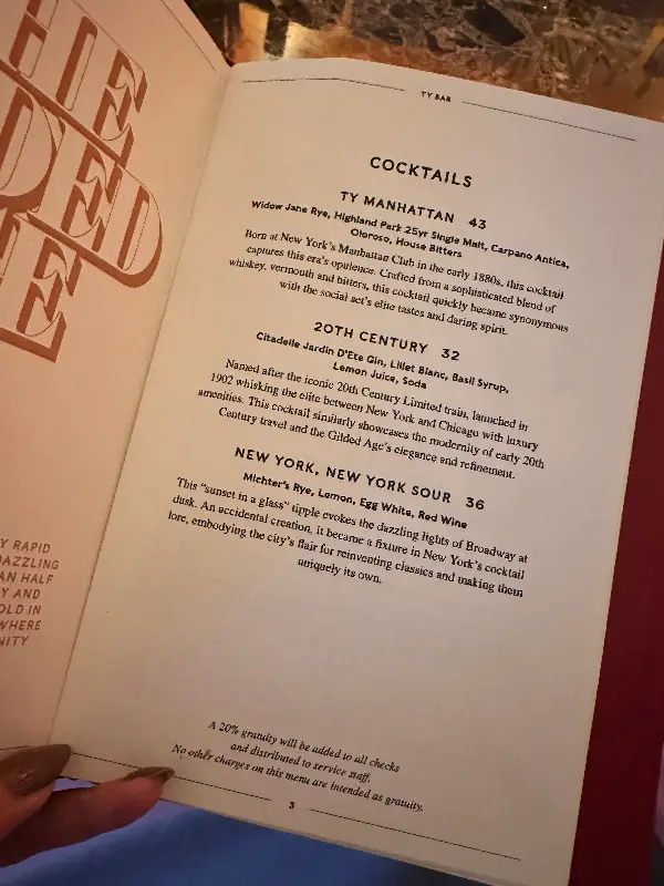 Ty Bar는 단순한 바를 넘어, 특별한 경험을 선사하는 뉴욕 최고의 장소 중 하나입니다. 5번가의 화려함 속에서 잠시 벗어나, Ty Bar에서 잊지 못할 추억을 만들어보세요. 당신의 미드타운 방문을 더욱 특별하게 만들어줄 것입니다.