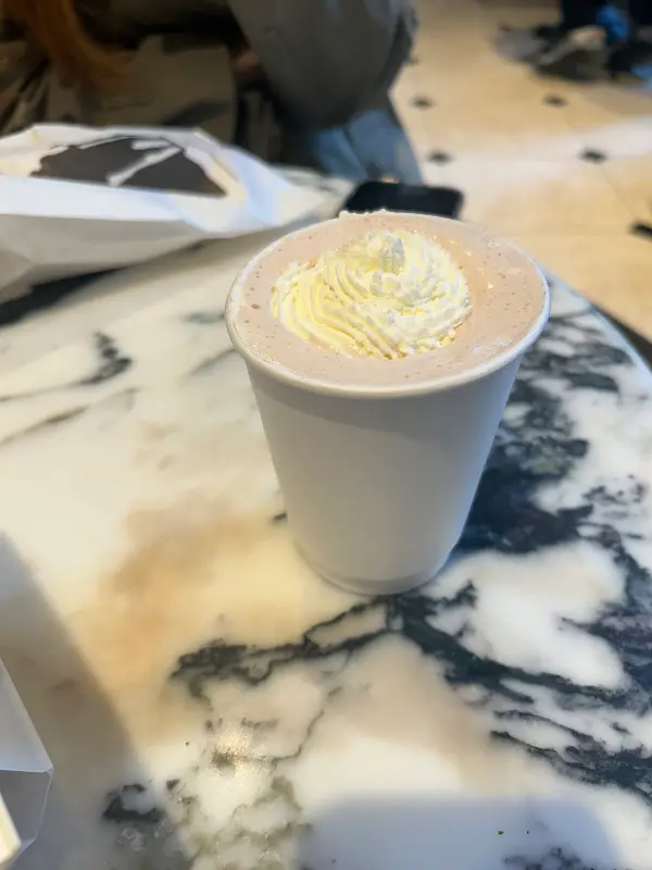저는 핫초코를 마셨는데, 리뷰처럼 휘핑크림을 거의 안 얹어 주시더라구요.🥺 하지만 핫초코 자체는 달콤하고 맛있었습니다.
