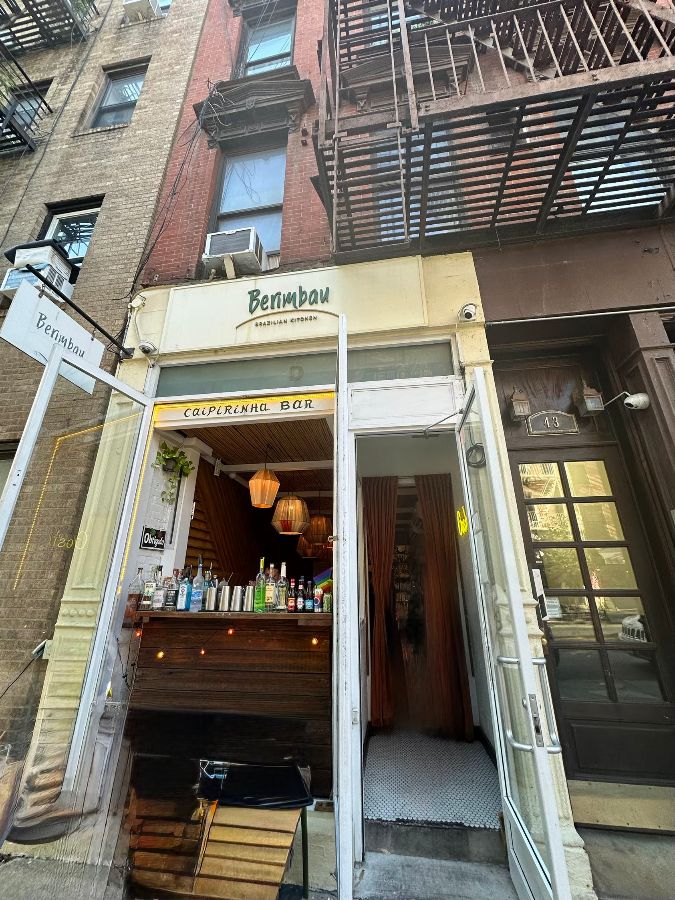 어둠이 내려앉기 시작하는 낭만적인 웨스트 빌리지의 거리, 그곳에 숨어 있는 보석 같은 공간, 바로 베림바우 브라질리언 키친입니다. 북적이는 뉴욕의 거리 한가운데서도 따뜻하고 아늑한 불빛이 새어 나오는 이곳은 마치 브라질의 정취를 고스란히 옮겨 놓은 듯한 이국적인 매력을 뽐냅니다. 문턱을 넘어서기 전부터 콧속을 간질이는 맛있는 음식 냄새와 흥겨운 대화 소리가 저절로 발걸음을 이끌죠. 작지만 활기찬 입구는 “CALPIRINHO BAR”라는 간판과 함께 이곳이 단순한 식당이 아닌, 특별한 경험을 약속하는 곳임을 암시합니다.