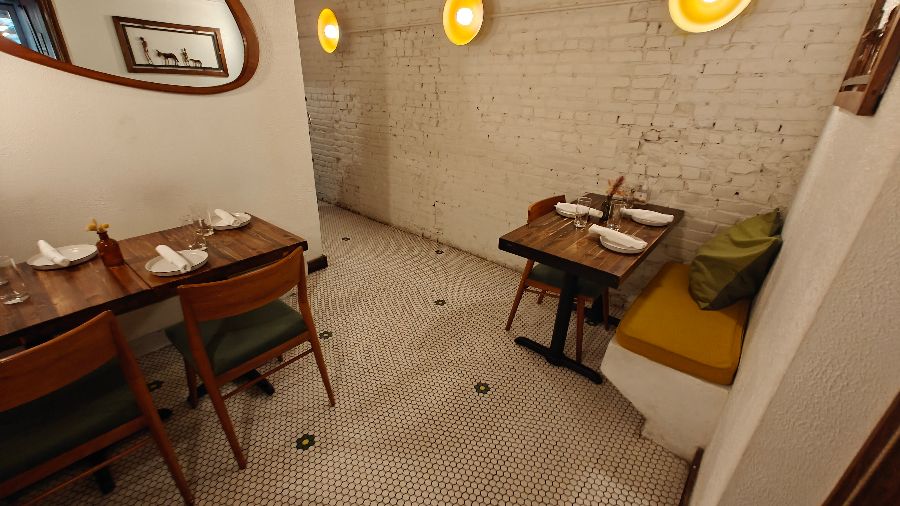 레스토랑 안으로 들어서는 순간, 바깥의 도시 풍경과는 사뭇 다른 아늑한 세계가 펼쳐집니다. 하얀 벽돌 벽은 온화한 조명 아래 부드러운 그림자를 드리우고, 나무 테이블과 포근한 쿠션이 놓인 벤치 좌석은 낯선 듯 편안한 분위기를 선사합니다. 육각형 타일로 섬세하게 꾸며진 바닥은 발걸음을 뗄 때마다 은은한 질감을 느끼게 하며, 벽에 걸린 그림과 따뜻한 노란빛 조명은 브라질 특유의 여유로운 감성을 더합니다. 이곳은 복잡한 일상에서 벗어나 사랑하는 이들과 함께 오롯이 식사에 집중할 수 있는 완벽한 데이트 장소이자 친구들과의 아늑한 모임 공간입니다. 특히 레스토랑 안쪽에는 비밀스러운 뒷마당 공간도 마련되어 있는데, 이곳은 더욱 아늑하고 아름다운 분위기로 식사의 즐거움을 한층 더해줍니다.