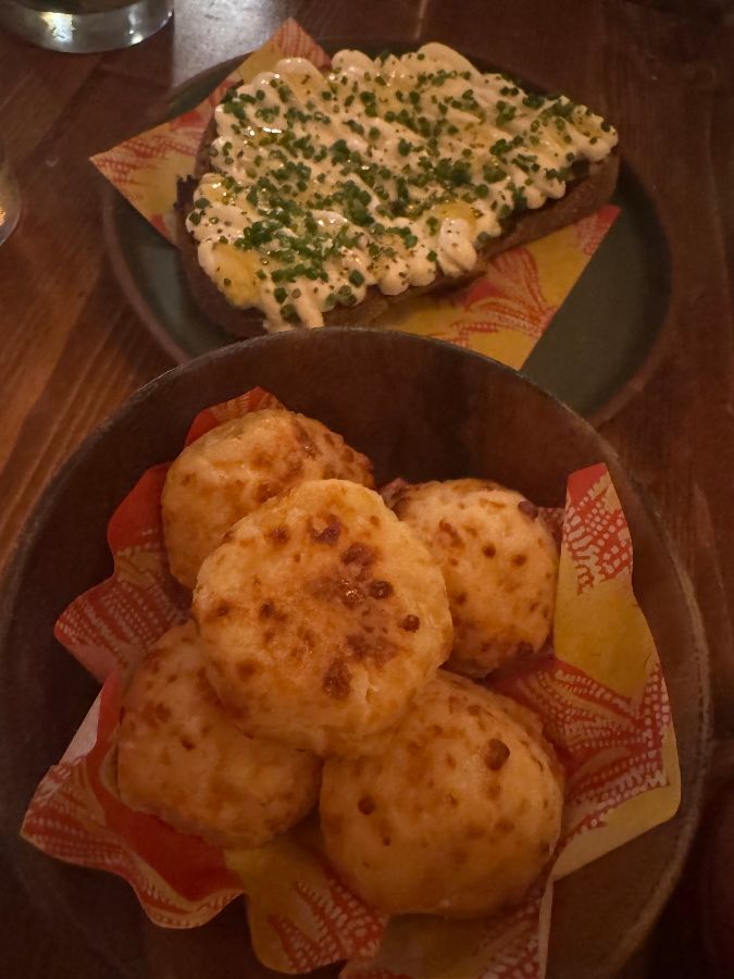 브라질 미식 여행의 서막은 다채로운 애피타이저로 화려하게 열립니다. 갓 튀겨 바삭하면서도 쫄깃한 텍스처를 자랑하는 오징어튀김은 입맛을 돋우기에 충분하며, 겉은 바삭하고 속은 부드러운 치즈빵(Pao de Queijo)은 갓 구워 따뜻하고 신선하여 감탄사를 자아냅니다. 고소한 치즈 향이 입안 가득 퍼지는 이 빵은 브라질 음식의 시작을 알리는 완벽한 전주곡과 같습니다. 촉촉하고 부드러운 소스와 함께 제공되는 홍합 요리 역시 잊을 수 없는 경험을 선사합니다. 깊고 진한 소스는 한 방울도 남김없이 마셔버릴 정도로 중독적인 맛을 자랑하죠.