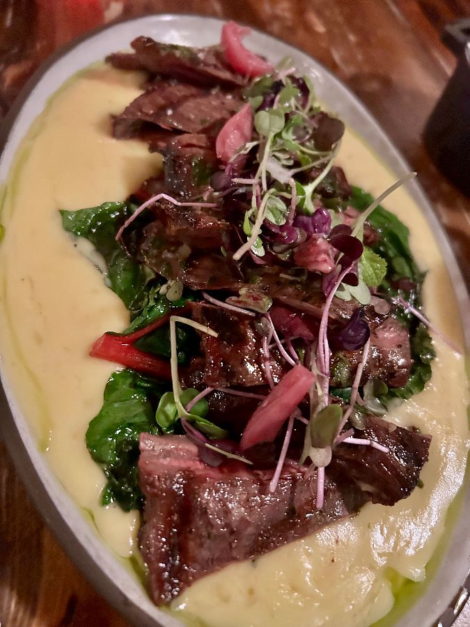 애피타이저로 예열된 입맛은 이제 베림바우 키친의 메인 요리에서 절정에 달합니다. 특히 스커트 스테이크는 이 곳의 시그니처 메뉴라 해도 과언이 아닙니다. 부드러운 퓨레 위에 먹음직스럽게 썰린 스커트 스테이크는 육즙 가득한 풍미와 완벽한 굽기로 혀끝을 황홀하게 만듭니다. 신선한 채소와 함께 어우러져 시각적으로도 아름다움을 뽐내는 이 요리는 한 입 베어 물 때마다 깊은 만족감을 선사하며, 방문객들은 이 맛에 “꼭 추천한다”는 극찬을 아끼지 않습니다.