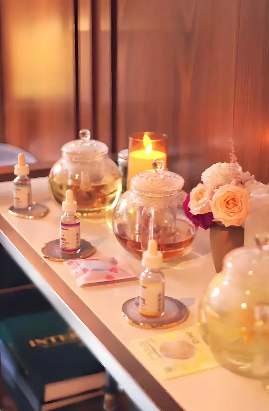 한쪽 벽면에는 다양한 종류의 꽃차가 진열되어 있었는데, 마치 작은 예술 작품을 감상하는 듯한 기분이 들었습니다. 각각의 차는 고유한 향기와 색깔을 자랑하며, 저마다의 이야기를 담고 있는 듯했습니다.
