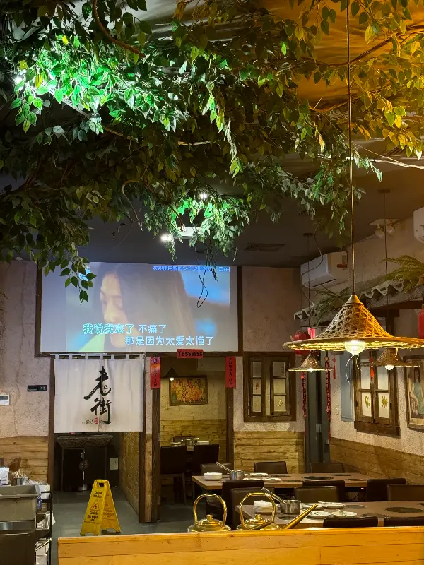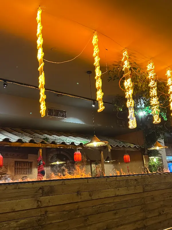 레스토랑의 인테리어는 독특하고 인상적이다. 천장에 매달린 오렌지색 조명은 따뜻하고 아늑한 분위기를 연출하며, 벽에 그려진 그림과 장식들은 마치 중국의 거리를 걷는 듯한 느낌을 선사한다.